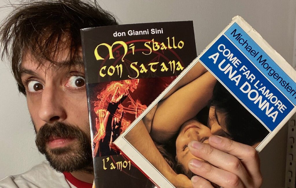 La genesi di questa missione è semplice: nel 2018 apre la pagina Instagram Libri Brutti, dove raccoglie titoli imbarazzanti, copertine discutibili (“Mi sballo con Satana”), testi dimenticati (l’epocale fumetto padano “Il Leghista), pamphlet pazzi (“Chi l’ha duro, la vince”) manuali improbabili (“Psicologia facile. Scritto in maniera semplice”). Poi trasforma quel catalogo del bizzarro in un podcast, in un libro (uscito l’8 aprile 2025 con Blackie Edizioni: “Il libro brutto dei libri brutti”) e in uno spettacolo dal vivo, in scena per il debutto al Monk di Roma.