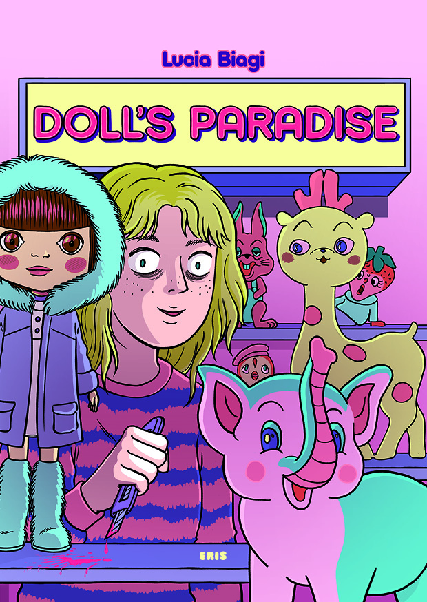“Doll’s Paradise”, la nuova opera di Lucia Biagi per Eris Edizioni, è un fumetto che esplora proprio questi limiti, che ci accompagna oltre i confini tracciati dalla nostra psiche. E lo fa con un tono che abbraccia cinismo e paradosso, cruda dolcezza e violenza iperbolica. Il tratto di Lucia è volutamente cartoonistico, lontano da una ricerca del reale nelle immagini. E proprio per questo il sangue e i deliri, le ingiustizie e le vendette sembrano ancora più crude, perché rompono l’involucro perfetto e ovattato di una scatola confezionata con cura.